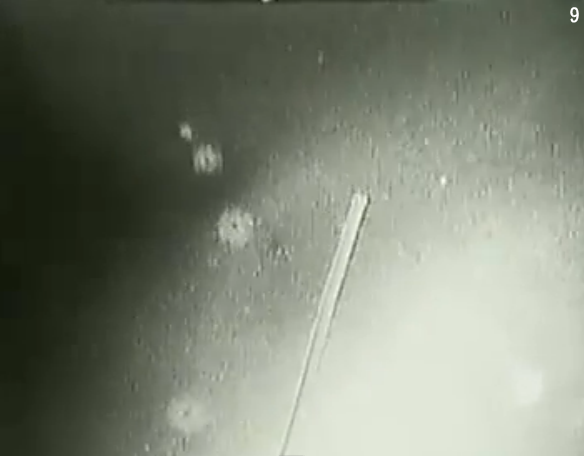El siguiente acercamiento expone a otro de los objetos con hendidura central. En todo momento se ve que los OVNIS se acercan al cable a una distancia casi ínfima.